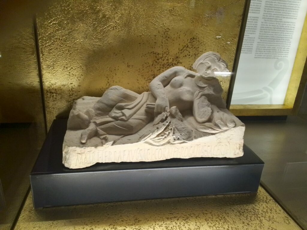 والقطع الثلاثون هم عبارة عن شواهد مادية للعبادات والممارسات الدينية التي شكّلت التاريخ الروحي للمنطقة. من بينها تمثال آلهة الأرض ”آتوس ” و”تيلوس”و آتيس” و”أرشيقال ”وتمثال ”آرتيميس ” الى جانب طاولة القرون والقرابين التي تعود الى القرن الثاني ميلادي …