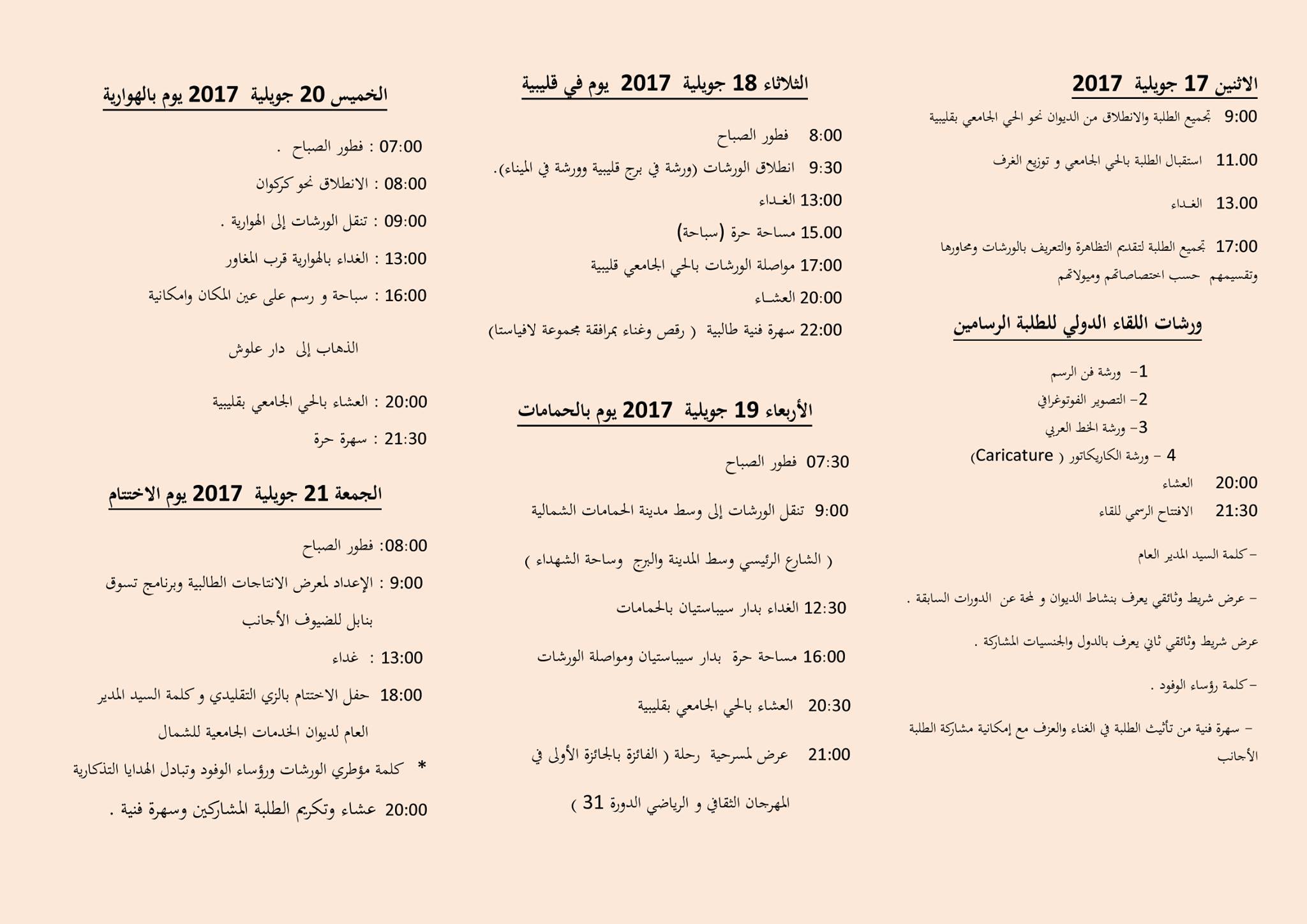 اللقاء الدولي للطلبة الرسامين “الدورة السابعة ” السلم والتسامح” جويلية 2017:
