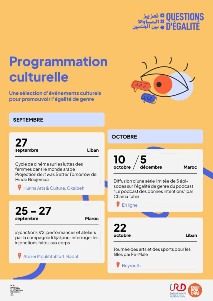 أبتداءا من الغد ينطلق البرنامج الثقافي “تعزيز المساواة بين الجنسين” → ستة أشهر من الفعاليات لتعزيز المساواة بين الجنسين في لبنان، المغرب وتونس