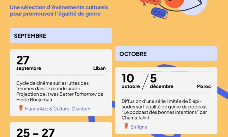 أبتداءا من الغد ينطلق البرنامج الثقافي “تعزيز المساواة بين الجنسين” → ستة أشهر من الفعاليات لتعزيز المساواة بين الجنسين في لبنان، المغرب وتونس ![]()
