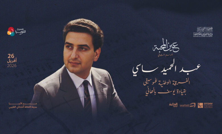 يُكرّم مسرح أوبرا تونس الملحن عبد الحميد ساسي، أحد القامات الرائدة والخالدة في تاريخ الأغنية التونسية ليلة الاحد 26 أفريل 2026 بمشاركة ثلة من الفنانات التونسيات.