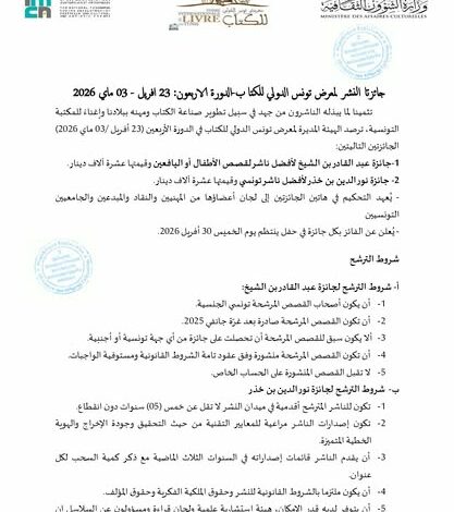 جائزتا النشر لمعرض تونس الدولي للكتاب/ الدورة 40 : 23 افريل – 03 ماي 2026