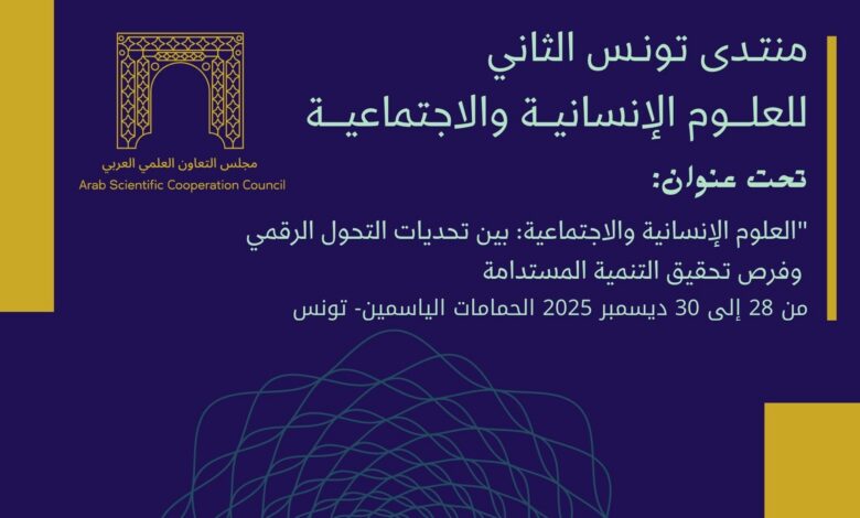 يدعو مجلس التعاون العلمي العربي للمشاركة في المنتدى الدولي الثاني للعلوم الانسانية والاجتماعية بتونس من 28 إلى 30 ديسمبر 2025