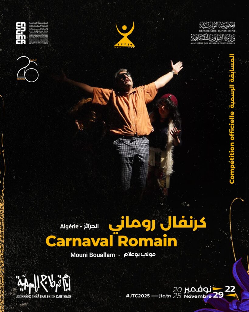 تشارك 12 مسرحية من تونس والعالم في المسابقة الرسمية للدورة 26 لأيام قرطاج المسرحية وستقع العروض ضمن الجدول التالي لمحبّي ومتابعي المسرح .