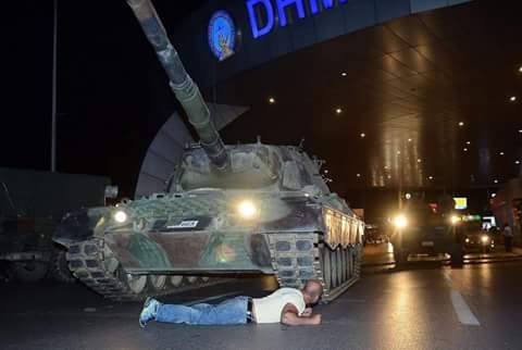 الشعب التركي نزل للشوارع والميادين مرددا شعارات ضد العسكر وصرخات اللّه أكبر و تكبير من اعلى المآذن … لينتصر الشعب الحر بصرف النظر عن العرق و التحزب و لا الاديولوجيا ….