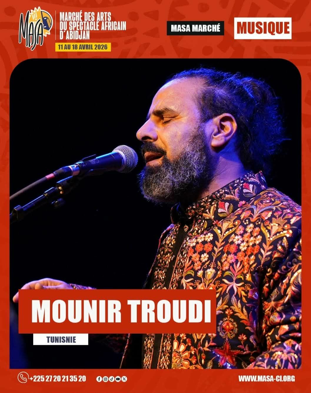 يستعد الفنان التونسي منير الطرودي للمشاركة بعرضه الموسيقي “ميزان” ضمن فعاليات الدورة الرابعة عشرة من التظاهرة الدولية سوق الفنون الأدائية ” MASA” التي تُقام من 11 إلى 18 أفريل 2026 بـالكوت ديفوار.