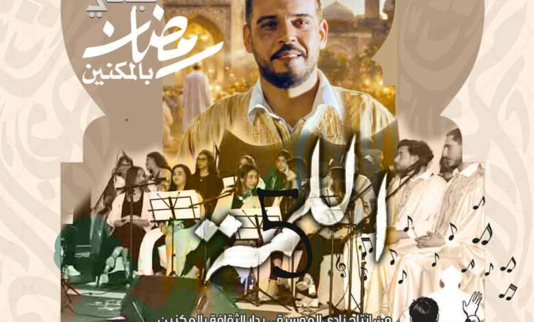 تنظم دار الثقافة بالمكنين، تحت إشراف المندوبية الجهوية للشؤون الثقافية بالمنستير، سهرة فنية رمضانية مميزة بعنوان “ليالي رمضان بالمكنين”، وذلك يوم السبت 14 مارس 2026 على الساعة التاسعة والنصف ليلاً، بمقر دار الثقافة بالمكنين.