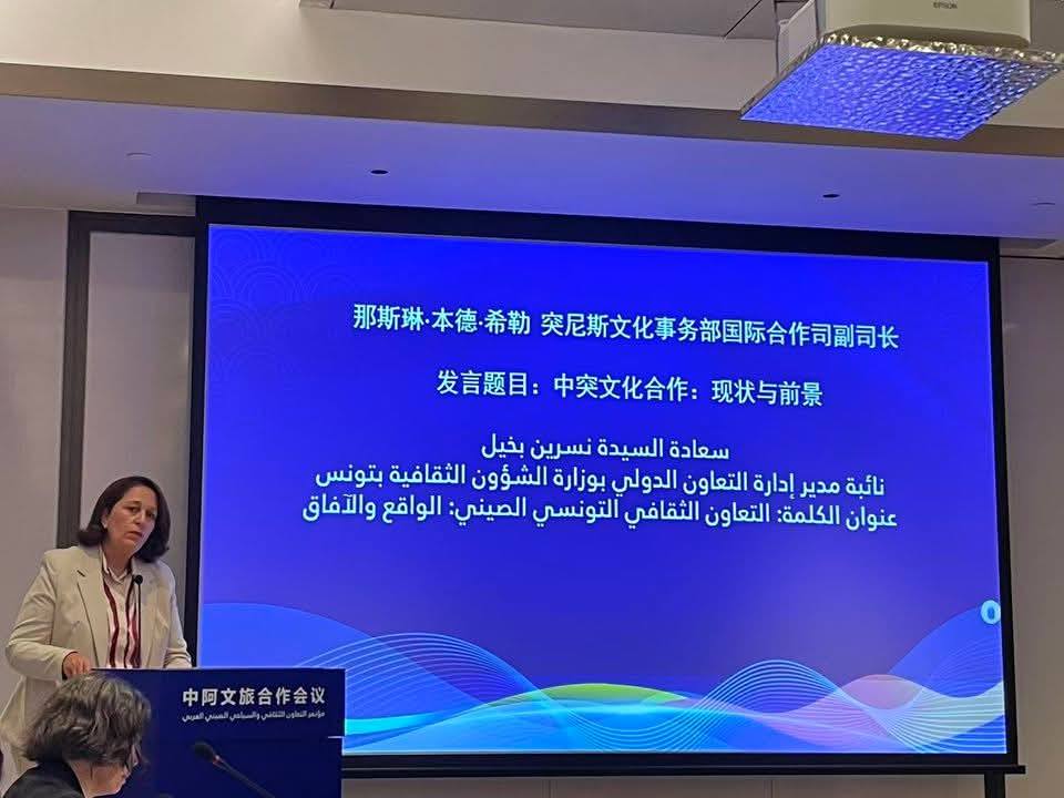 كما قدمت السيدة نسرين دخيل، نائبة مدير التعاون الدولي بوزارة الشؤون الثقافية، مداخلة حول التعاون التونسي الصيني في المجال الثقافي: الواقع والآفاق.