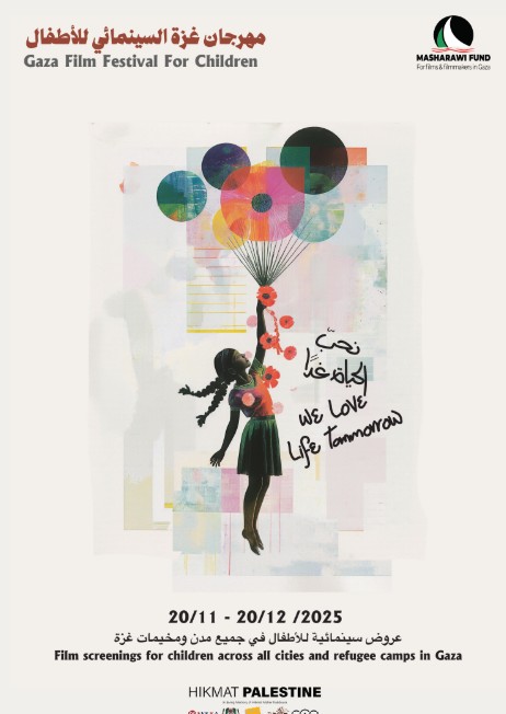 تحت عنوان من بين الدمار في غزة، يولد الأمل تنطلق الدورة الأولى من مهرجان غزة السينمائي للأطفال تحت شعار «نحبّ الحياة، غدًا»، من 20 نوفمبر إلى 20 ديسمبر 2025.
