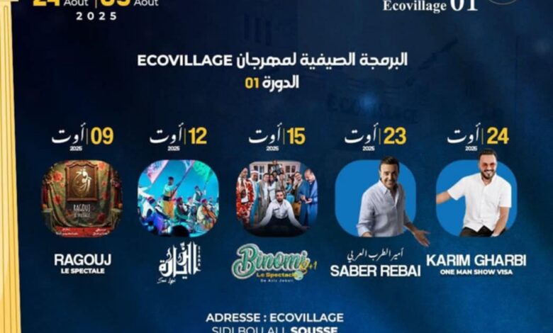 مهرجان “إيكوفيلدج” يجمع نجوم الفن في سوسة تحت شعار “حين يلتقي الفن بالطبيعة” .