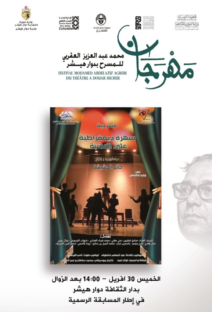 مهرجان محمد عبد العزيز العقربي للمسرح بدار الثقافة دوّار هيشر من 25 أفريل إلى غرة ماي 2026 بتونس العاصمة